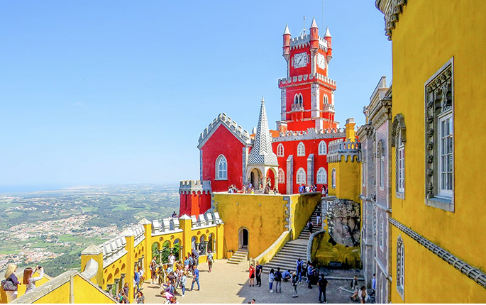 ◎佩納宮彷彿從童話中走出,坐落在辛特拉的翠綠山巒間,色彩繽紛的牆面、哥德式與摩爾式交織的建築風格,每一個轉角都讓人驚嘆。紅、黃、藍交錯的宮牆,與雲霧繚繞的山谷相映成趣,彷彿置身於另一個時空。它不僅是葡萄牙浪漫主義建築的巔峰,更是國王斐迪南二世對藝術與自然的完美獻禮。站在城堡高處,眺望大西洋與整個辛特拉山區,讓人忘卻塵世,心馳神往。