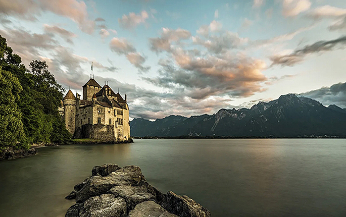 遊船將停靠西庸古堡碼頭。西庸古堡是瑞士最具代表性的中世紀城堡之一,它歷經千年風霜,依山傍水而建,完美融合防禦工事與湖畔景致,彷彿一座從歷史中走出的童話堡壘。您可以漫步在石牆與塔樓之間,探索中世紀的寢室、古老的地下牢房與華麗的宴會廳。城堡的每一處角落都散發著歷史韻味,並承載著文學與藝術的傳奇–拜倫之西庸古堡的囚徒,使西庸古堡更添神秘色彩。※ 大噴泉每年3-10月份開放;刮西北風時,為避免水柱吹向岸邊,大噴泉會暫停噴射,敬請知悉
